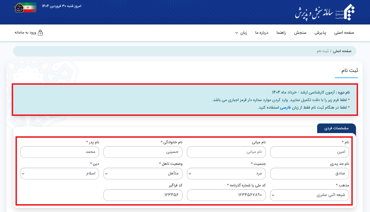 مرحله 5 : در این صفحه ابتدا توضیحات ثبت نام را مطالعه کنید. سپس مشخصات فردی خود را با دقت وارد کنید.