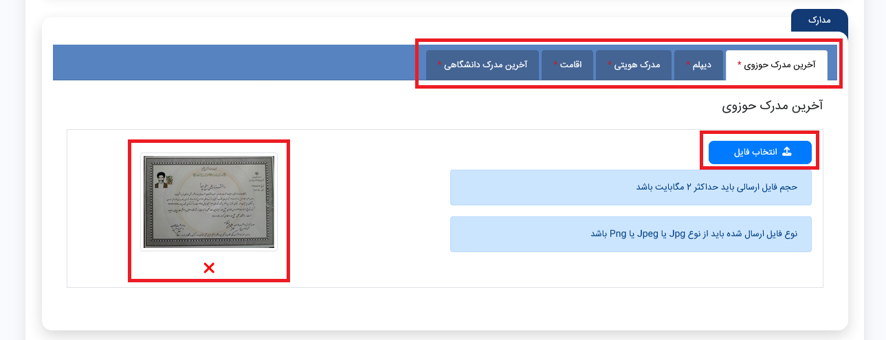 مرحله 10 : در این بخش باید مدارک خواسته شده را به ترتیب بارگذاری کنید.